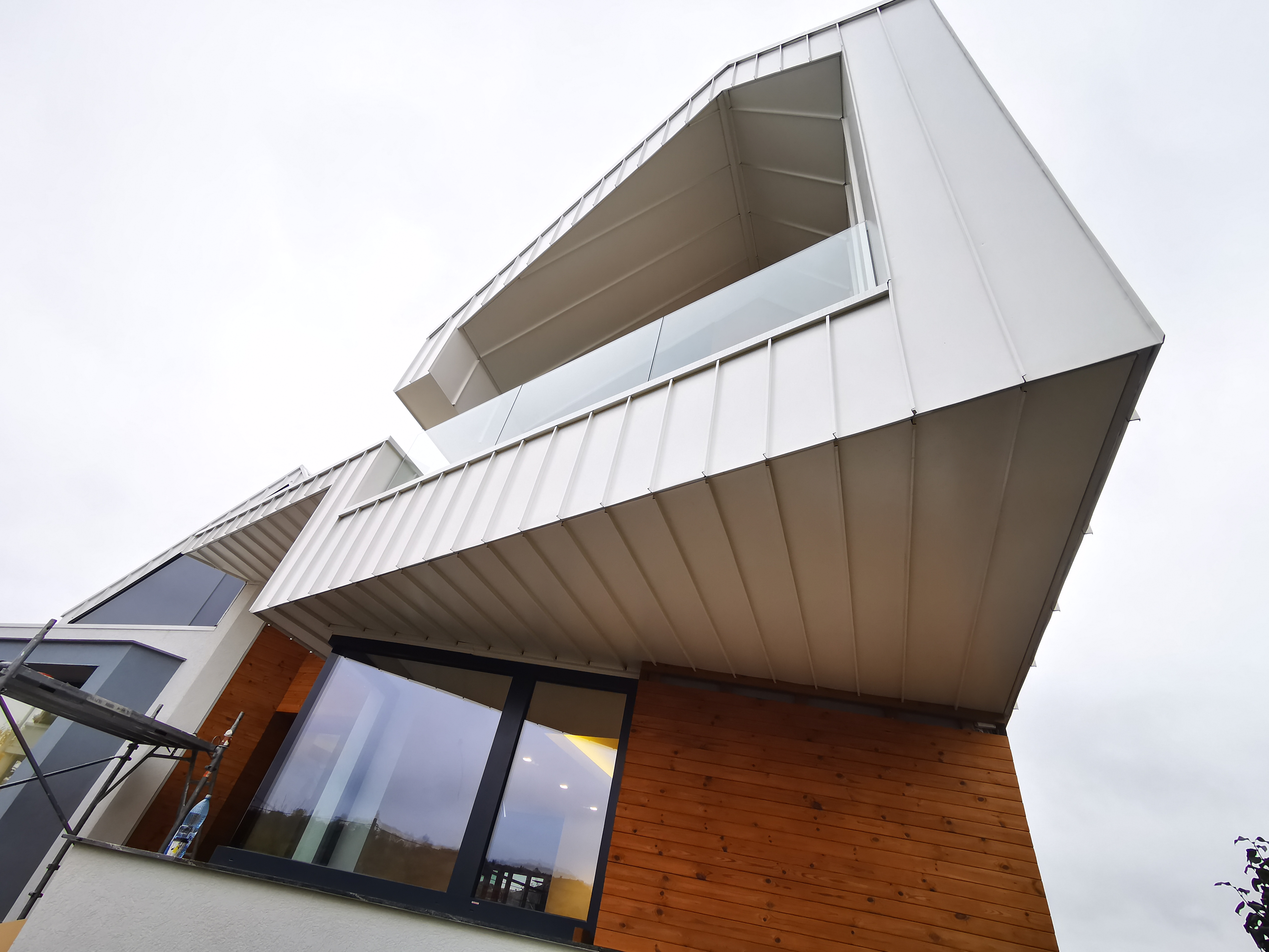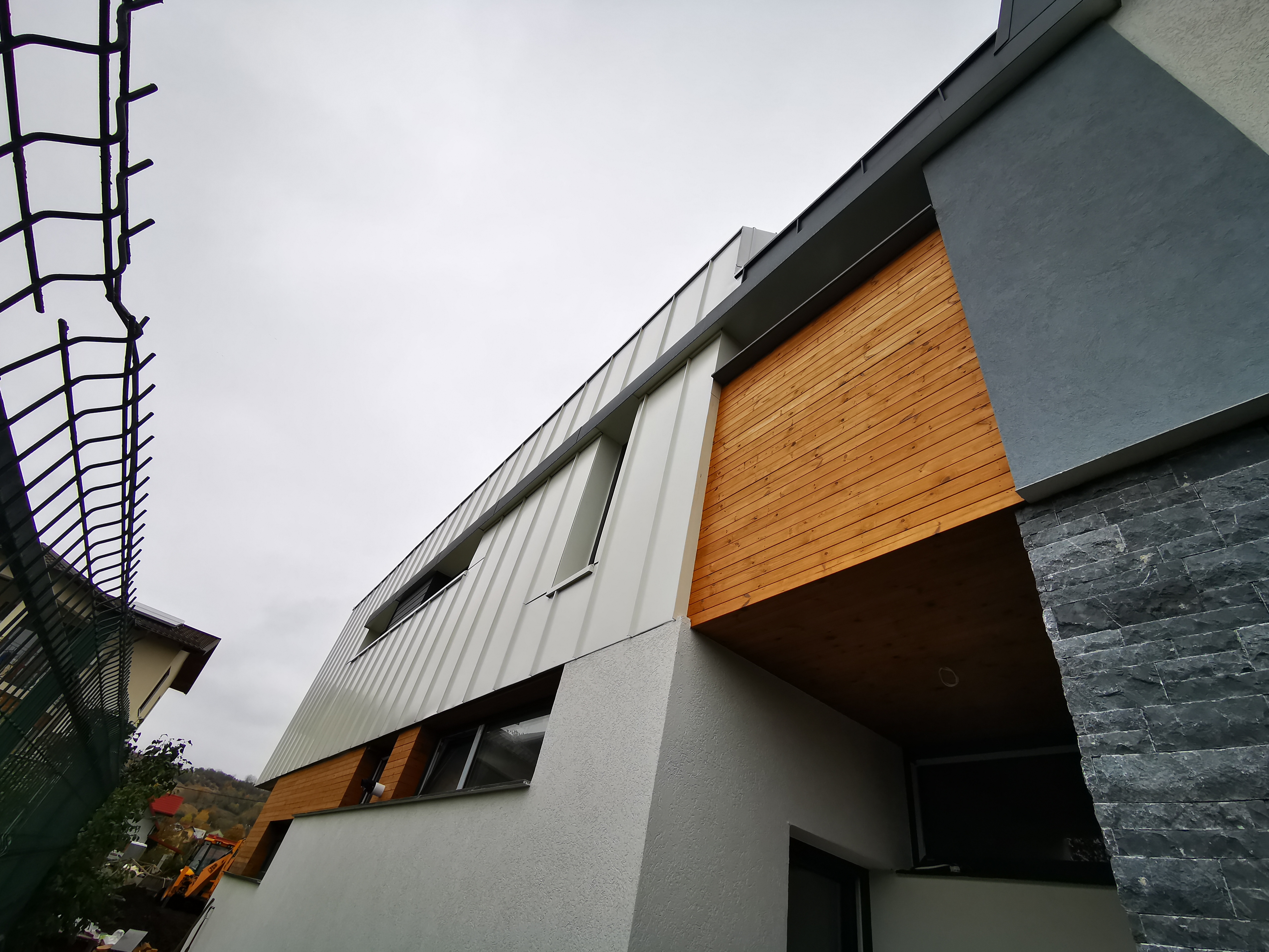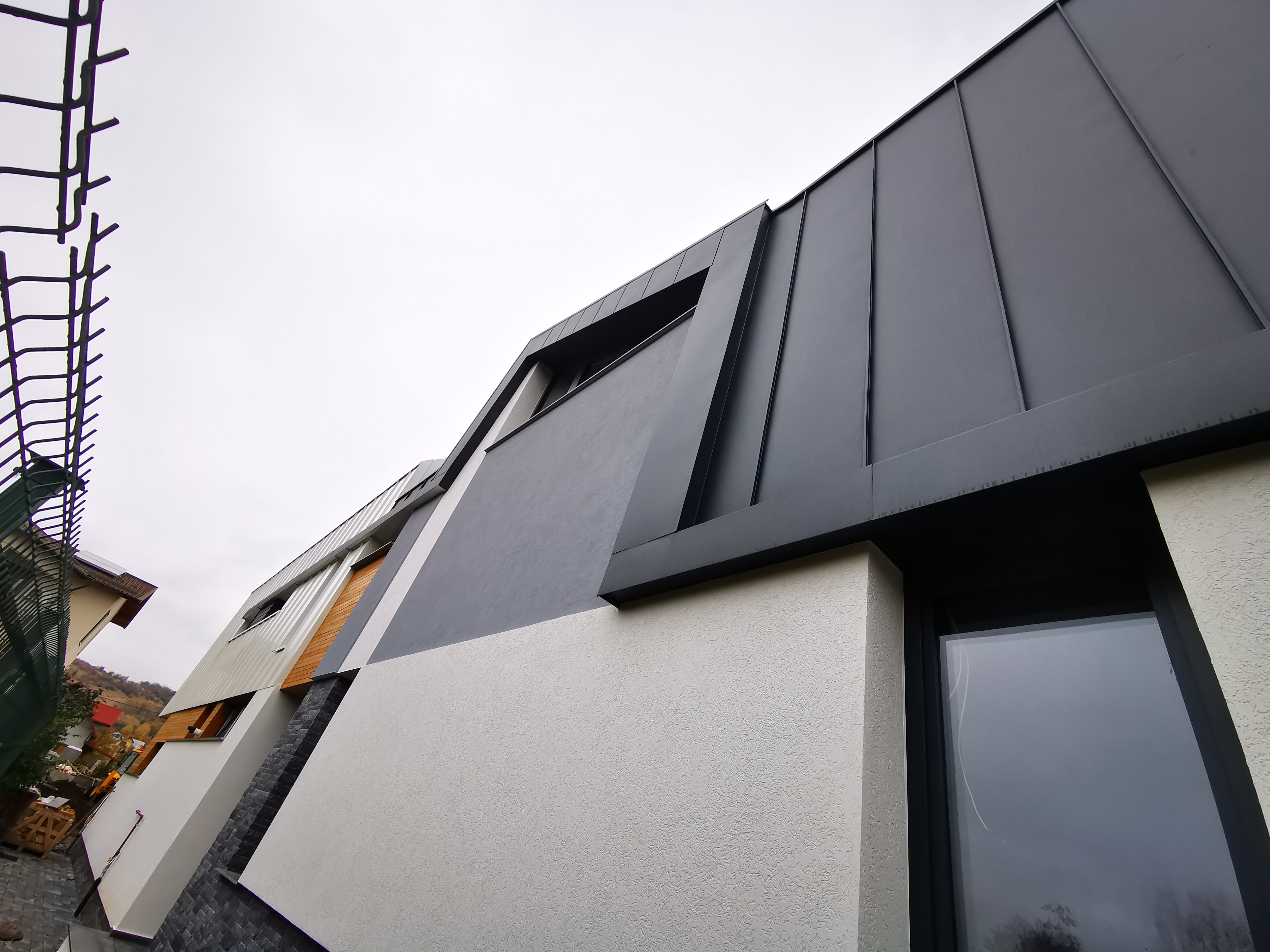 Descriere: Acoperis, fatada ventilata si jgheab mascat Titan Zinc Materiale: aluminiu 0.7 mm Ral: doua nuante 7016 - 9010