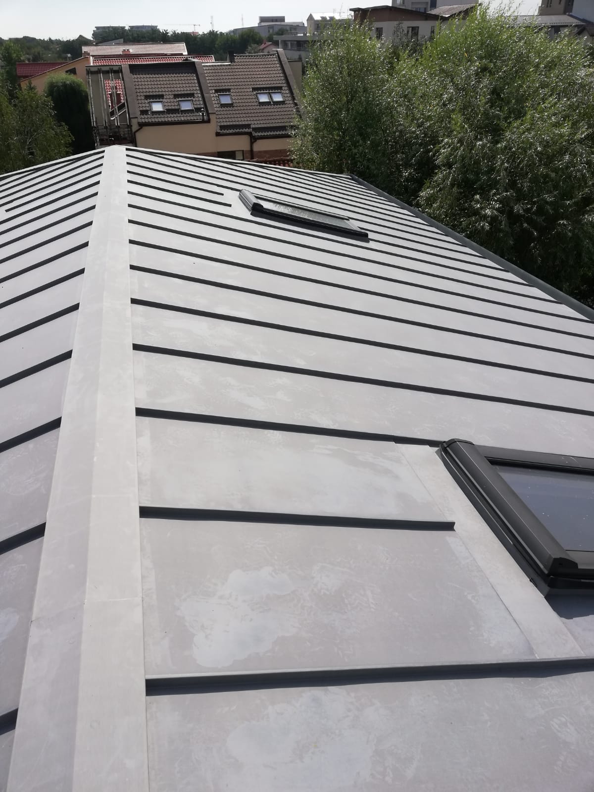 Descriere: Acoperis + Jgheab mascat Titan Zinc Materiale: Titan zinc 0,7mm Ral: Quartz Wmzinc