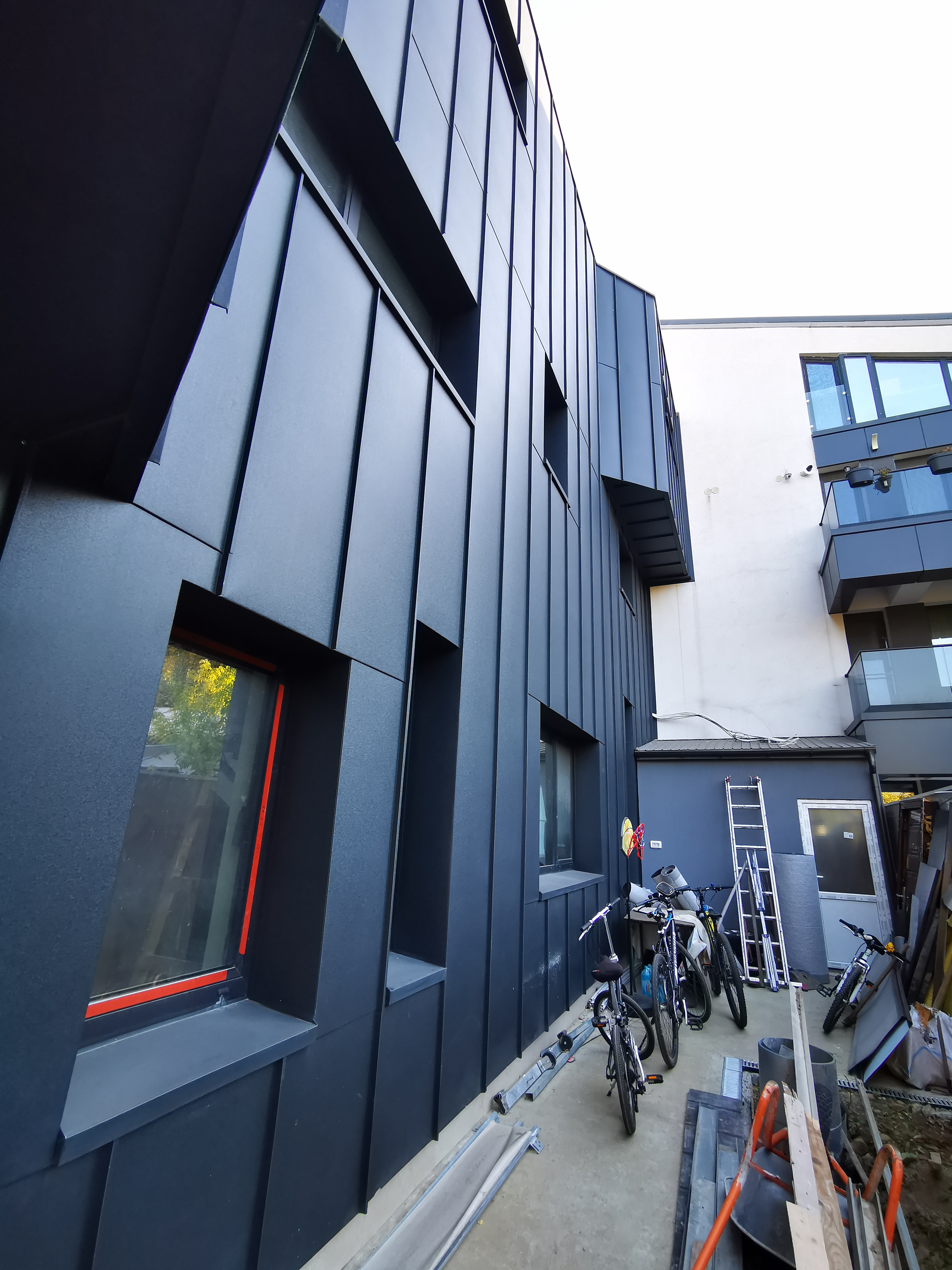 Descriere: Acoperis + fatada ventilata + Jgheab Titan Zinc Materiale: Aluminiu vestis 0,7mm Ral: 7016